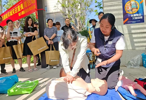 在互動(dòng)體驗(yàn)環(huán)節(jié),工作人員展示結(jié)繩演練并指導(dǎo)實(shí)操,保障群眾掌握基本結(jié)繩逃生技能。現(xiàn)場(chǎng)還設(shè)置了仿真人體模型,醫(yī)護(hù)人員指導(dǎo)群眾進(jìn)行心肺復(fù)蘇操作練習(xí),同時(shí)為群眾演示海姆立克急救法操作流程。