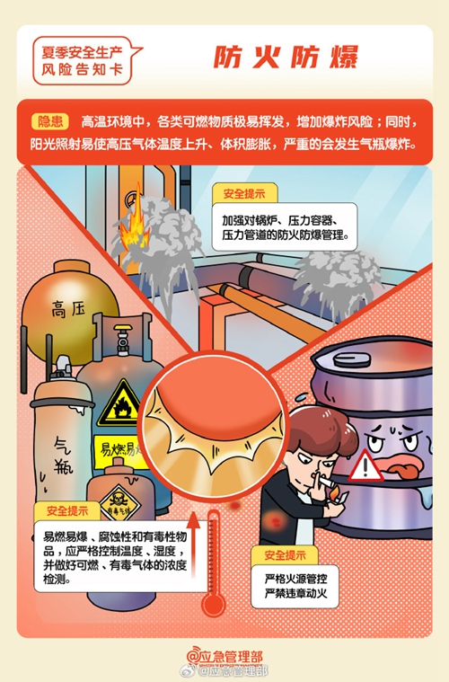 高溫天氣下安全生產(chǎn)工作要關(guān)注哪些風(fēng)險(xiǎn)隱患?如何防范?這組風(fēng)險(xiǎn)告知卡請(qǐng)查收↓↓↓