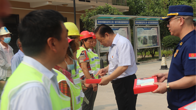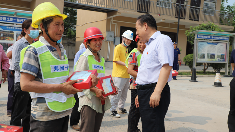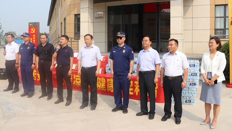 進(jìn)入夏季以來(lái),持續(xù)出現(xiàn)的高溫天氣,給奮戰(zhàn)在建設(shè)一線的施工人員帶來(lái)嚴(yán)峻考驗(yàn),廣大職工不畏酷暑,堅(jiān)守崗位,辛勤付出。為做好廣大職工的防暑降溫工作,切實(shí)保護(hù)職工身體健康,6月11日,鄭州市總工會(huì)、鄭州市消防救援支隊(duì)到鄭州地產(chǎn)集團(tuán)西流湖公司中原新區(qū)土地一級(jí)開(kāi)發(fā)項(xiàng)目指揮部開(kāi)展主題為“送清涼、送安全、送健康、促和諧”的夏季送清涼活動(dòng)。鄭州市一級(jí)巡視員、市總工會(huì)黨組書記、主席趙新中,市消防救援支隊(duì)副支隊(duì)長(zhǎng)、滅火救援指揮部部長(zhǎng)李隆,市總工會(huì)副主席宋少丹,鄭州地產(chǎn)集團(tuán)有限公司監(jiān)事會(huì)主席、工會(huì)主席李靜波及西流湖公司黨支部書記、董事長(zhǎng)、總經(jīng)理吉獻(xiàn)亮等領(lǐng)導(dǎo)出席活動(dòng)?;顒?dòng)由西流湖公司副總經(jīng)理昌磊主持。