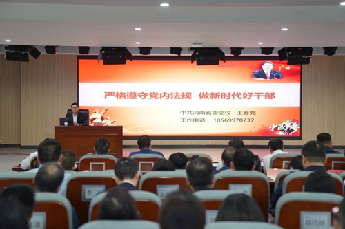集團(tuán)黨委邀請(qǐng)河南省委黨校中共黨史教研部王春亮副教授,以《嚴(yán)格遵守黨內(nèi)法規(guī) 做新時(shí)代好干部》為題展開(kāi)宣講。王教授分別從紀(jì)律嚴(yán)明是黨的光榮傳統(tǒng)和獨(dú)特優(yōu)勢(shì)、黨員干部嚴(yán)格遵守黨內(nèi)法規(guī)的迫切性和做嚴(yán)守黨內(nèi)法規(guī)好干部的主要著力點(diǎn)三個(gè)方面宣講,號(hào)召全體黨員干部要以黨紀(jì)學(xué)習(xí)教育為契機(jī),上好黨性鍛煉“必修課”。