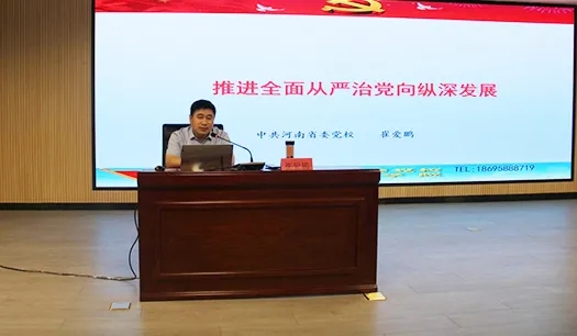 隨后,河南省委黨校崔愛鵬教授作了題為《推進全面從嚴治黨向縱深發(fā)展》的專題培訓(xùn)。培訓(xùn)中,崔愛鵬教授從深刻理解新時代全面從嚴治黨向縱深發(fā)展的重大意義、全面把握新時代黨的建設(shè)的總要求、貫徹落實習近平總書記關(guān)于全面從嚴治黨的重要論述三個方面進行了全面剖析和深入解讀,以史實為依據(jù),深入淺出,娓娓道來,使大家充分認識到,“嚴”是立黨的初心品質(zhì),是治黨的鮮明特色,也是強黨的經(jīng)驗優(yōu)勢。堅持從嚴治黨,更是我們黨克服一切艱難險阻、完成歷史使命的重要政治優(yōu)勢,為集團學(xué)習黨史、了解黨史,進一步做好黨風廉政建設(shè)和作風建設(shè)工作提供了指南。