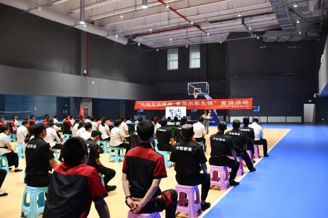 宣講團第一組赴鄭地奧體公司在奧體中心綜合訓(xùn)練館展開宣講,鄭地奧體、中航物業(yè)保潔及安保等一線員工共100余人參加了此次宣講活動。來自黨群黨支部王曉婕、人力資源黨支部馬遠俊、黃河兩岸公司黨支部吳林熹、都市開發(fā)公司黨支部馮靜、投資管理公司黨支部范瑩,從學(xué)習(xí)貫徹習(xí)近平總書記重要回信精神、“講好黃河故事”、“ 絲路精神”和共筑中國夢等方面,通過身邊人身邊事,以小見大,講述了一個個平凡而偉大的勞動者的故事,號召全體黨員同志進一步樹立勞動觀念、弘揚勞動精神,爭做出彩鄭地人,以一流的業(yè)績和實際行動擔(dān)當(dāng)重任,為集團高質(zhì)量發(fā)展貢獻力量。