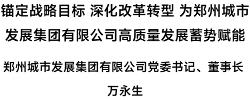 下面,為您推出鄭州城市發(fā)展集團有限公司黨委書記、董事長萬永生署名文章《錨定戰(zhàn)略目標 深化改革轉型 為鄭州城市發(fā)展集團有限公司高質量發(fā)展蓄勢賦能》——