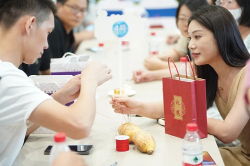 接親游戲寄托了大家找到意中人的美好心愿,也讓在場(chǎng)參與者近距離體會(huì)中國傳統(tǒng)文化的魅力與神韻。整個(gè)現(xiàn)場(chǎng)古色古香,熱鬧極了。
