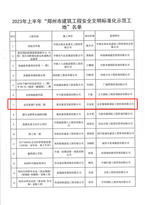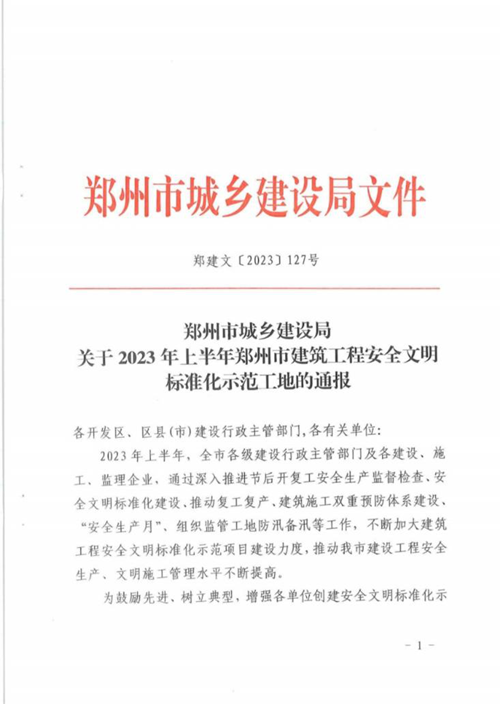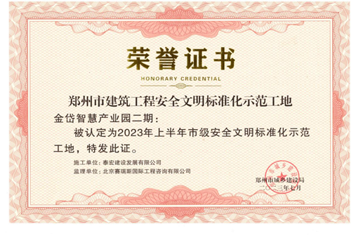金岱智慧產(chǎn)業(yè)園項目榮獲鄭州市建筑工程安全文明標準化示范工地稱號