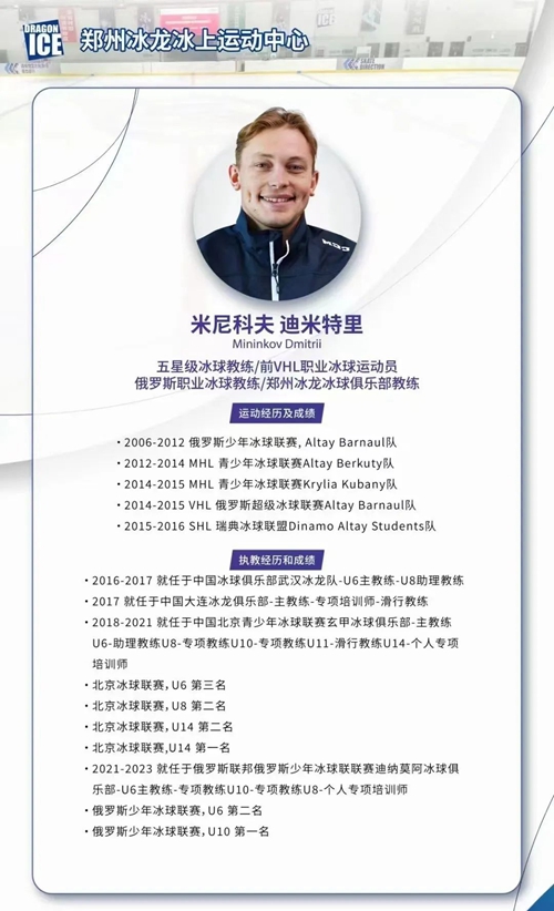 鄭州奧體冰龍冰上運(yùn)動中心是一座現(xiàn)代化冰上訓(xùn)練綜合場館。新年伊始,冰龍冰上運(yùn)動中心迎來國際知名冰球教練米尼科夫·迪米特里,國家E級教練員趙鐵北、馬騰飛入駐,將通過豐富的執(zhí)教經(jīng)驗(yàn)和專業(yè)知識,為河南冰雪運(yùn)動注入鮮活動力!