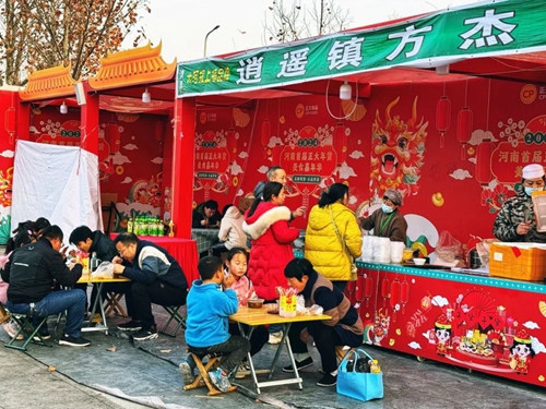 春節(jié)期間正常營(yíng)業(yè),全天候不間斷熬煮香噴噴、熱騰騰的胡辣湯,使美食街這家攤位成功出圈,一碗湯一張餅,日銷量高達(dá)3000份,濃濃河南特色,滿足了眾多游客的心和胃。