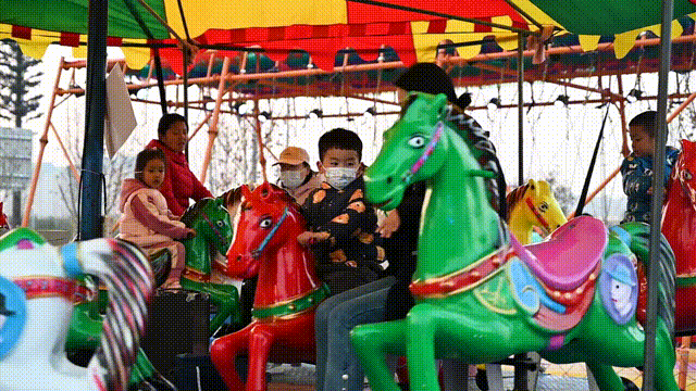 場(chǎng)外排隊(duì)等候,場(chǎng)內(nèi)激情碰撞!兒童游樂(lè)區(qū)的碰碰車帶領(lǐng)大朋友、小朋友放松身心,歡樂(lè)駕駛,碰出新年好運(yùn)!