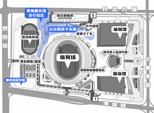 奧體童樂(lè)灣步行街區(qū)西鄰田徑訓(xùn)練場(chǎng),適合開展足球、慢跑、飛盤等親子運(yùn)動(dòng),南側(cè)配備有“奧體便民共享便利店”和衛(wèi)生間,向東可直達(dá)體育場(chǎng)二層平臺(tái)的“小太陽(yáng)”網(wǎng)紅打卡地,不僅視野開闊,能一覽各場(chǎng)館建筑風(fēng)貌,還配備了攀爬架、沙坑、秋千等兒童玩樂(lè)項(xiàng)目。