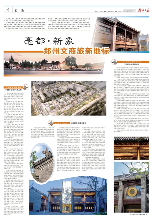 6月18日,“亳都·新象 城市復(fù)興”——2024媒體走進(jìn)亳都活動舉辦,傳承鄭州城市文脈,和歷史風(fēng)貌一脈相承,形成了充滿中原特色的文化商業(yè)街區(qū)?,F(xiàn)代的文化商業(yè)場景,融入了本地街巷肌理、空間特色和中原文化元素。歷史與現(xiàn)代在這里相遇,碰撞出獨(dú)一無二的火花。