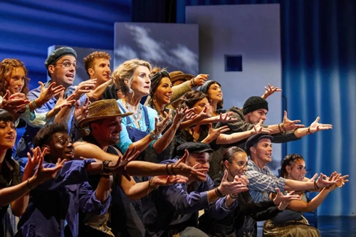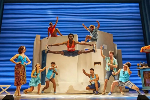 迪斯科風(fēng)格在《媽媽咪呀!》中無處不在。從音樂、舞蹈,到服裝設(shè)計(jì),都給人以舞廳“蹦迪”的動(dòng)感與歡樂體驗(yàn)。而ABBA 樂隊(duì)熱情洋溢的曲風(fēng),轉(zhuǎn)化成希臘島嶼的陽光、沙灘,所有的金曲與熱舞也洋溢著地中海燦爛陽光下的積極與樂觀,猶如一首生命的贊歌。正如《星期日快報(bào)》的評價(jià):