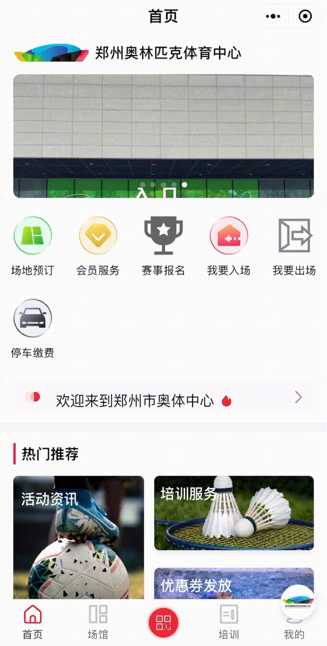 鄭州奧體中心小程序推出暢游體驗券!