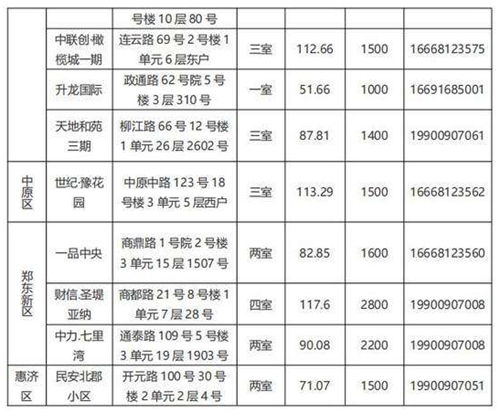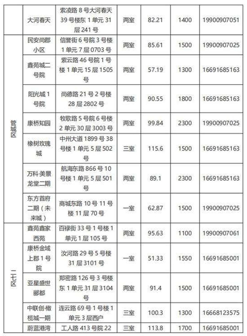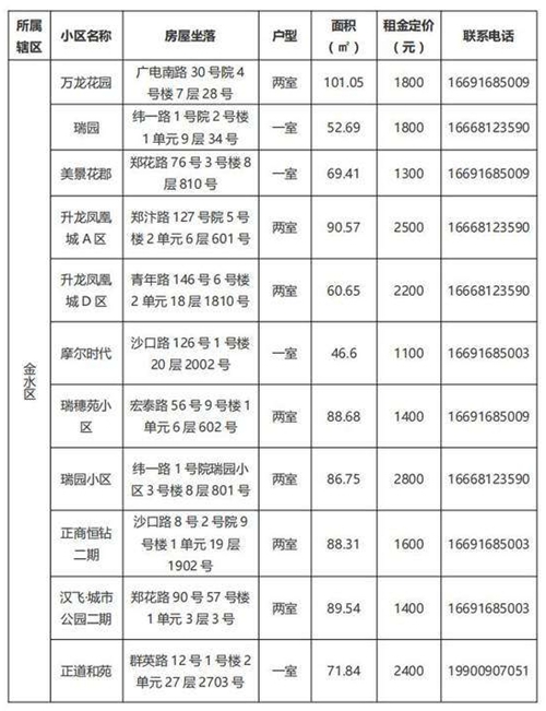 本批次配租房源共計32套,其中金水區(qū)12套、管城區(qū)7套、二七區(qū)8套、中原區(qū)1套、鄭東新區(qū)3套、惠濟區(qū)1套。水電費均為民用水電標準,物業(yè)費為各小區(qū)物業(yè)收費標準,房源精裝修交付,周邊配套設施齊全,配備家具家電,拎包入住,后續(xù)房源將根據(jù)裝修進度情況陸續(xù)配租。