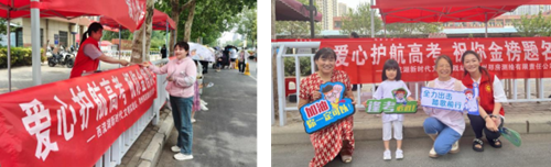“愛(ài)心助考點(diǎn)”服務(wù)站內(nèi),高考專(zhuān)用尺、簽字筆、鉛筆、橡皮等文具整齊擺放,為考生解決不時(shí)之需。志愿者們身著統(tǒng)一服裝,手拿“逢考必勝”“加油,你一定可以”“全力出擊 踏歌前行”等祝福手卡,用微笑表達(dá)對(duì)高考學(xué)子的祝福。