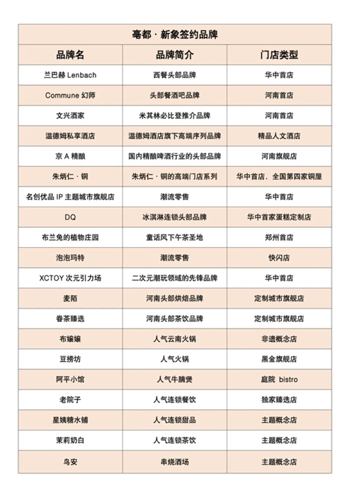 發(fā)布會(huì)上,蘭巴赫LENBACH華中首店、COMMUNE幻師河南首店、米其林必比登推薦的文興酒家河南首店、溫德姆私享酒店、京A精釀河南旗艦店、朱炳仁·銅全國(guó)第四座銅屋“中原銅屋”華中首店、名創(chuàng)優(yōu)品IP主題城市旗艦店華中首店、XCTOY次元引力場(chǎng)華中首店、DQ華中首家蛋糕定制門(mén)店、布蘭兔的植物莊園鄭州首店…等品牌確定進(jìn)駐項(xiàng)目,占比超30%的首進(jìn)品牌,讓亳都·新象成為鄭州首發(fā)經(jīng)濟(jì)的策源地之一。