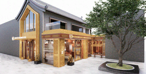 以COMMUNE幻師的門店設(shè)計為例——從效果圖可以看出,建筑外部以青灰色磚墻復刻商代建筑肌理,檐角神獸造型融入現(xiàn)代燈光設(shè)計,整體風格充滿著古樸與時尚。店內(nèi)則以暖色調(diào)營造松弛感,酒墻擺滿了來自全球的精釀。每當味蕾觸碰到精釀的麥香,窗外同時飄入來自3600年前夯土的氣息——在這里,顧客喝的不是單純的酒,而是歷史與現(xiàn)代的奇妙敘事。