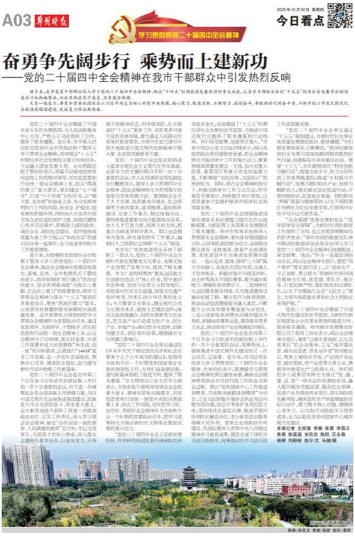 黨的二十屆四中全會擘畫了中國式現(xiàn)代化建設(shè)的宏偉藍(lán)圖,為新時代新征程國有企業(yè)改革發(fā)展指明前進(jìn)方向、提供根本遵循,鄭州城發(fā)集團(tuán)廣大黨員干部群眾深受鼓舞、倍感振奮。近日,《鄭州日報》《鄭州晚報》開設(shè)了【學(xué)習(xí)貫徹黨的二十屆四中全會精神】專欄,2025年10月30日,報道了鄭州城發(fā)集團(tuán)深入學(xué)習(xí)貫徹落實黨的二十屆四中全會精神,以全會精神為指引真抓實干創(chuàng)未來。
