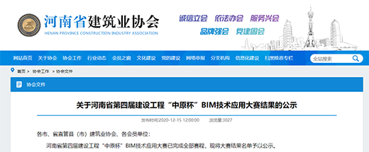 鄭州地產(chǎn)集團投資管理有限公司榮獲河南省第四屆建設(shè)工程“中原杯”BIM大賽三等獎