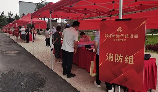 鄭地新港華苑項(xiàng)目于2021年8月26日下午,順利完成由鄭州市城建局牽頭組織,人防、消防、質(zhì)監(jiān)、規(guī)劃等部門共同參與的聯(lián)合驗(yàn)收,是疫情期間第一個(gè)通過聯(lián)合驗(yàn)收的建設(shè)項(xiàng)目。為嚴(yán)格落實(shí)鄭州市新冠肺炎疫情的防控要求,新港華苑項(xiàng)目部提前制定了周密的疫情防控方案,采取了妥善的疫情防控措施,有序組織進(jìn)入院區(qū)人員掃健康碼、檢查48小時(shí)核酸檢測結(jié)果、測量體溫、酒精消殺、分發(fā)防疫包等。經(jīng)過啟動(dòng)儀式、書面匯報(bào)、現(xiàn)場巡查、聯(lián)動(dòng)測試等環(huán)節(jié),鄭地新港華苑項(xiàng)目順利完成聯(lián)合驗(yàn)收工作。