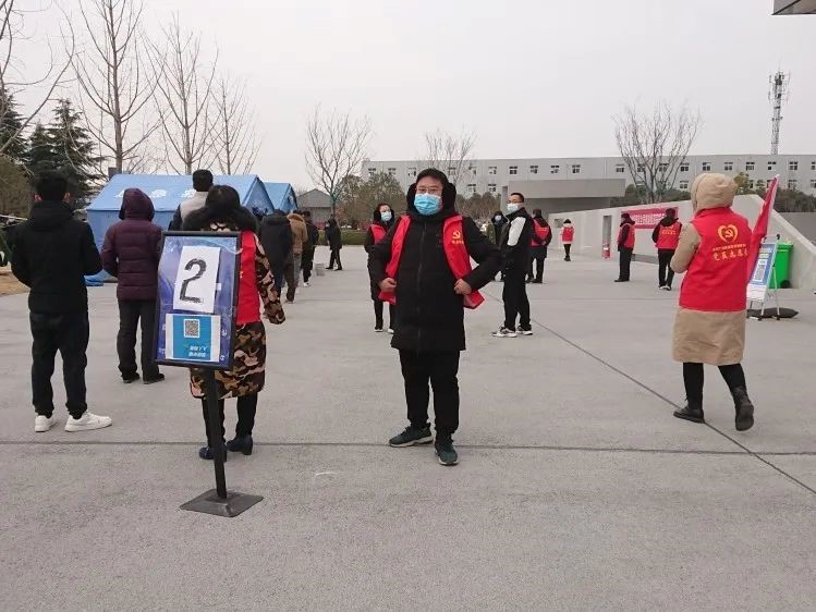 初心如磐,為民而戰(zhàn)。為有效提高檢測(cè)效率,制定高效的檢測(cè)流程,為群眾提供優(yōu)質(zhì)滿意的服務(wù)。在鄭州金岱科創(chuàng)城商務(wù)服務(wù)中心現(xiàn)場(chǎng),志愿者們?cè)诮疳饭芪瘯?huì)的支持下成立了臨時(shí)黨支部及黨員先鋒突擊隊(duì),由支部書(shū)記和突擊隊(duì)長(zhǎng)統(tǒng)籌指揮現(xiàn)場(chǎng)檢測(cè)工作,所有志愿者及醫(yī)護(hù)人員擔(dān)任隊(duì)員聽(tīng)從指揮、統(tǒng)一行動(dòng)、互相配合。大家分工有序各司其職,上下團(tuán)結(jié)一心,相互鼓舞,將各個(gè)環(huán)節(jié)工作做到無(wú)縫銜接。冬日的嚴(yán)寒絲毫沒(méi)有擋住志愿者服務(wù)的熱情,大家以實(shí)際行動(dòng)踐行“我為群眾辦實(shí)事”要求,扛起服務(wù)當(dāng)前疫情防控大局的責(zé)任擔(dān)當(dāng)。