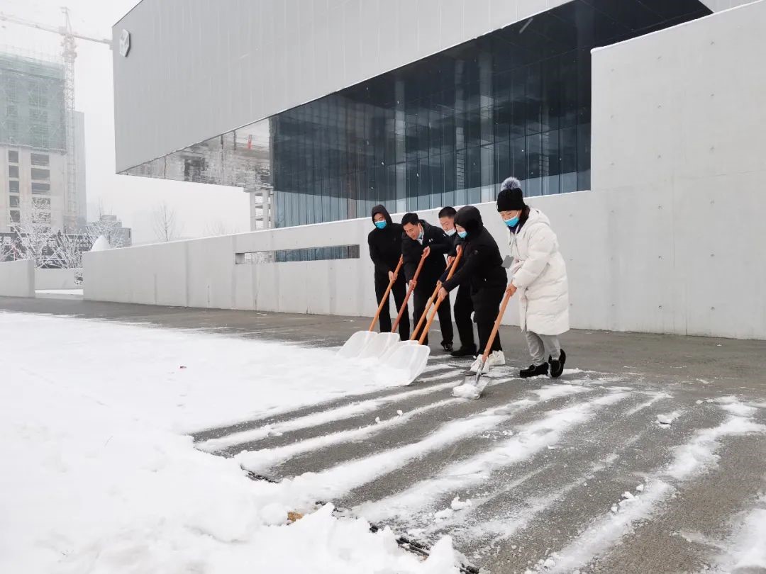 全力以赴,分秒必爭(zhēng)。4日下午突如其來(lái)的降雪,給第二天的檢測(cè)工作帶來(lái)了極大困難。面對(duì)艱巨的任務(wù),為切實(shí)做好全員核酸檢測(cè)準(zhǔn)備工作,保障參檢群眾生命財(cái)產(chǎn)安全。鄭地發(fā)展公司作為國(guó)企,危急關(guān)頭彰顯國(guó)企擔(dān)當(dāng),第一時(shí)間作出動(dòng)員號(hào)召,由黨員同志帶頭,迅速組建了一支30余人的志愿服務(wù)隊(duì),連夜開(kāi)始了場(chǎng)地清理布置工作,調(diào)配防疫物資、準(zhǔn)備消毒液、架設(shè)引導(dǎo)牌、拉設(shè)警戒線、張貼掃碼紙、擺放檢測(cè)臺(tái),對(duì)商務(wù)服務(wù)中心進(jìn)行全面消殺,同時(shí)組織新加入的志愿者開(kāi)展模擬演練,幫助大家快速熟悉服務(wù)工作,保證各個(gè)環(huán)節(jié)有條不紊。5日清晨,志愿者們?cè)缭鐏?lái)到商務(wù)服務(wù)中心現(xiàn)場(chǎng)清理積雪,僅僅半個(gè)小時(shí),園區(qū)便露出了干凈整潔的路面,為迎接檢測(cè)做好了充分準(zhǔn)備。